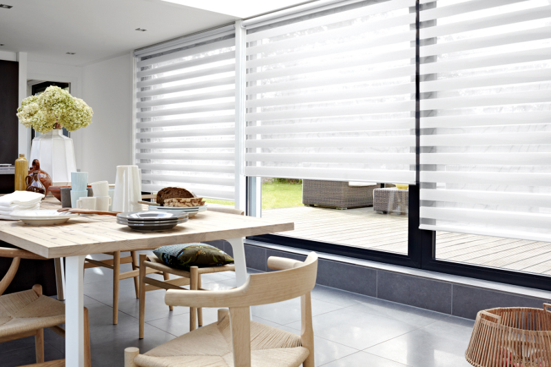 Usan los mismos mecanismos de las cortinas roller, pero su instalación es diferente; formadas por bandas traslúcidas y opacas que se alternan y superponen entre sí, es posible controlar la entrada de luz y así generan distintos ambientes.